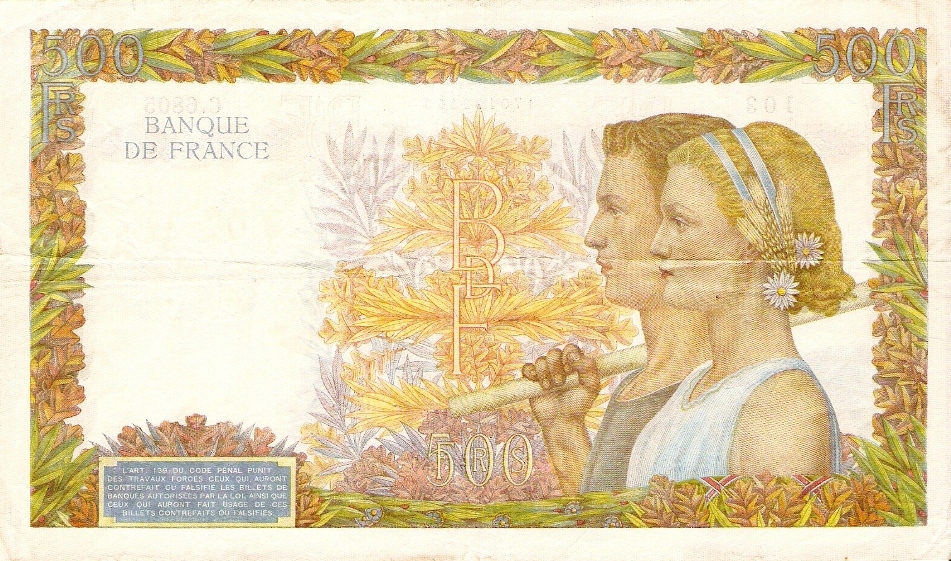 500 FRANCS del 1942     Nota: FDS- Franchi La Paix