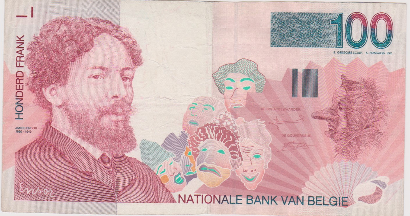 Cette coupure rend hommage au plus célèbre des peintres d’Ostende, James Ensor, pionnier de l’expressionnisme et célèbre pour ses thèmes de masques et de squelettes.