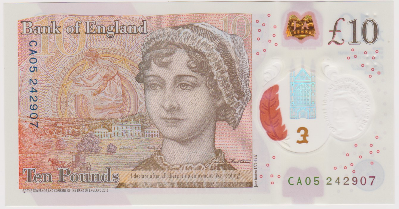 Questa è la prima banconota da dieci sterline “di plastica” della storia britannica. È leggermente più piccola della precedente versione cartacea di Darwin e molto più resistente.